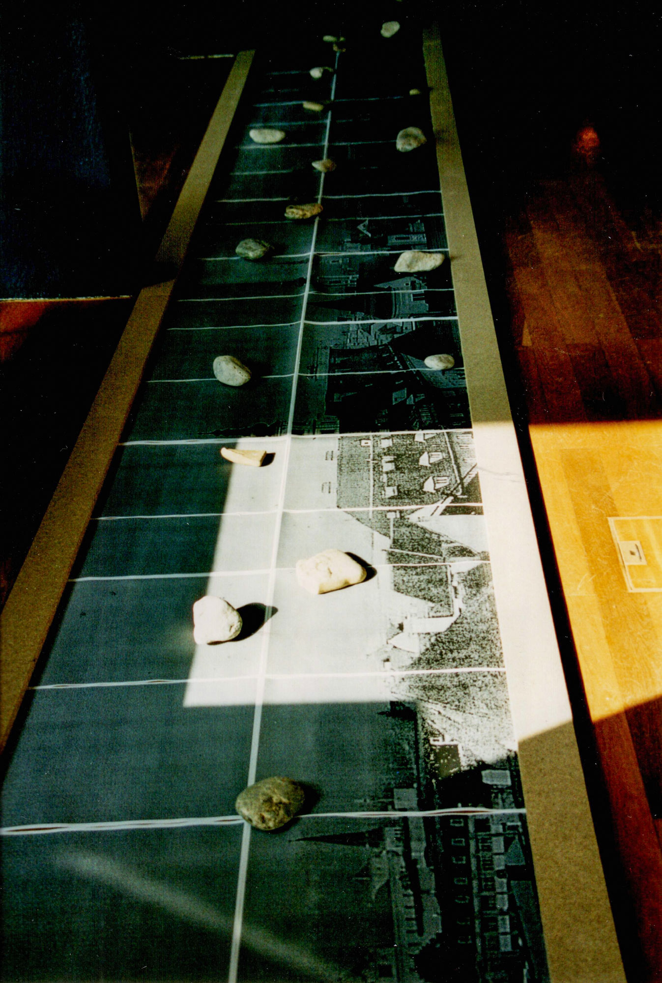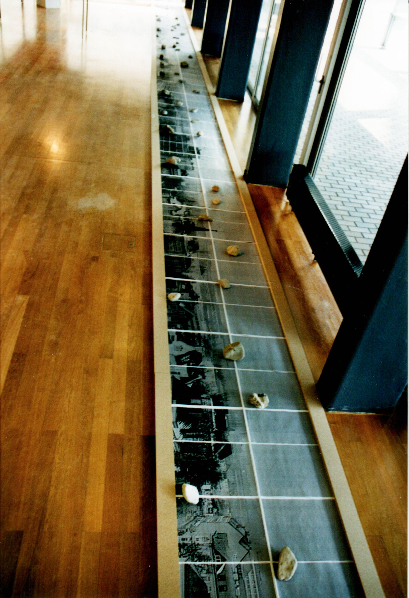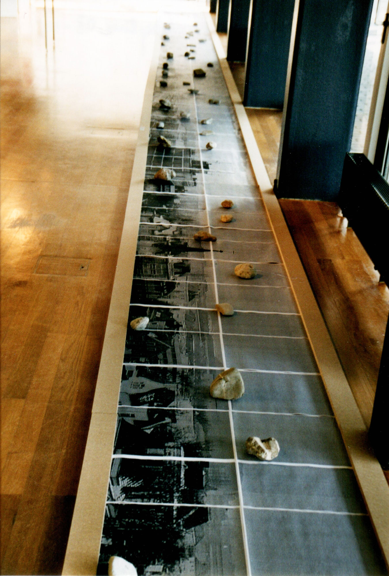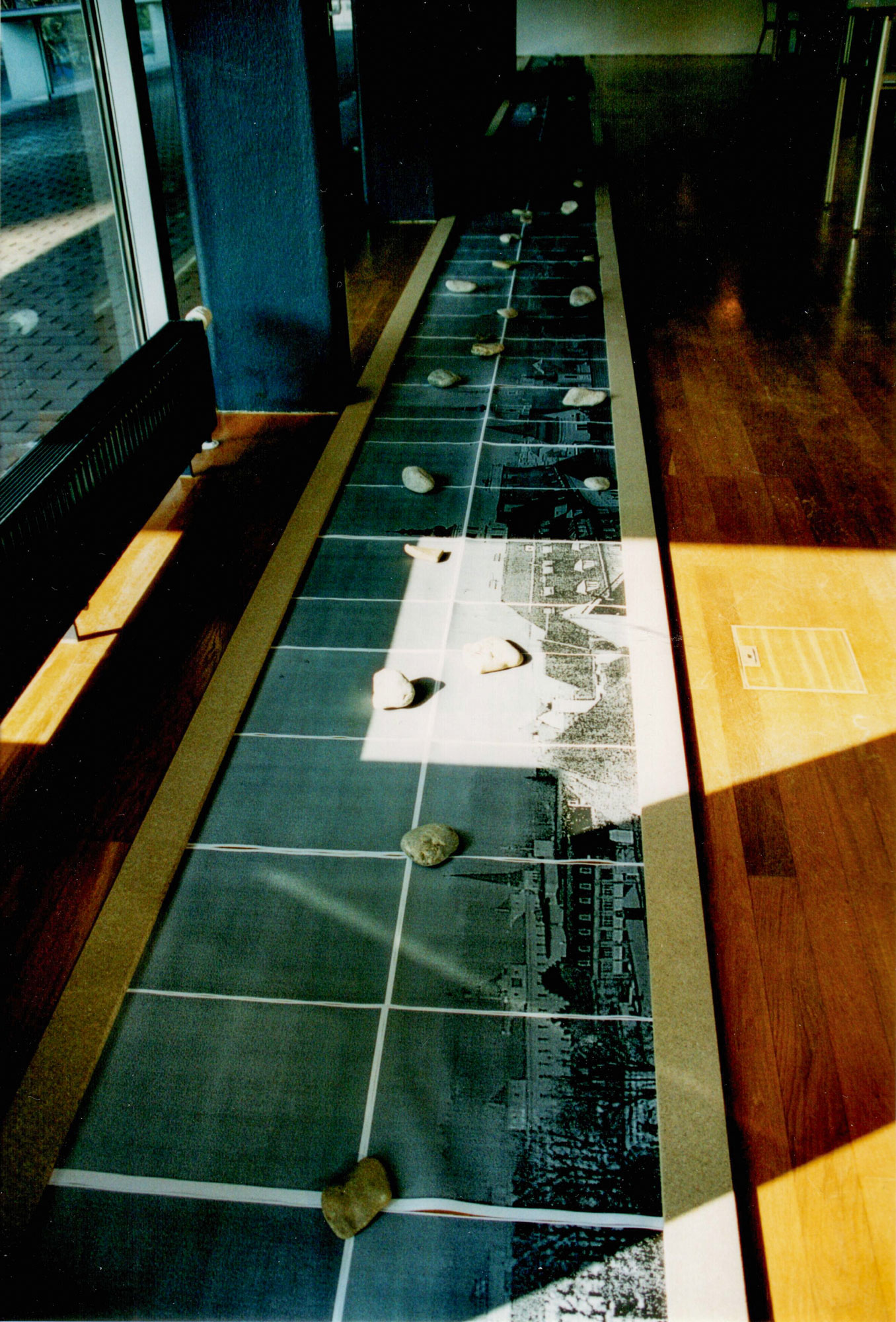 Installation Skyline im Fluss in der Ausstellung im Blickpunkt: St. Pölten , 2003 in der Landesbibliothek St. Pölten