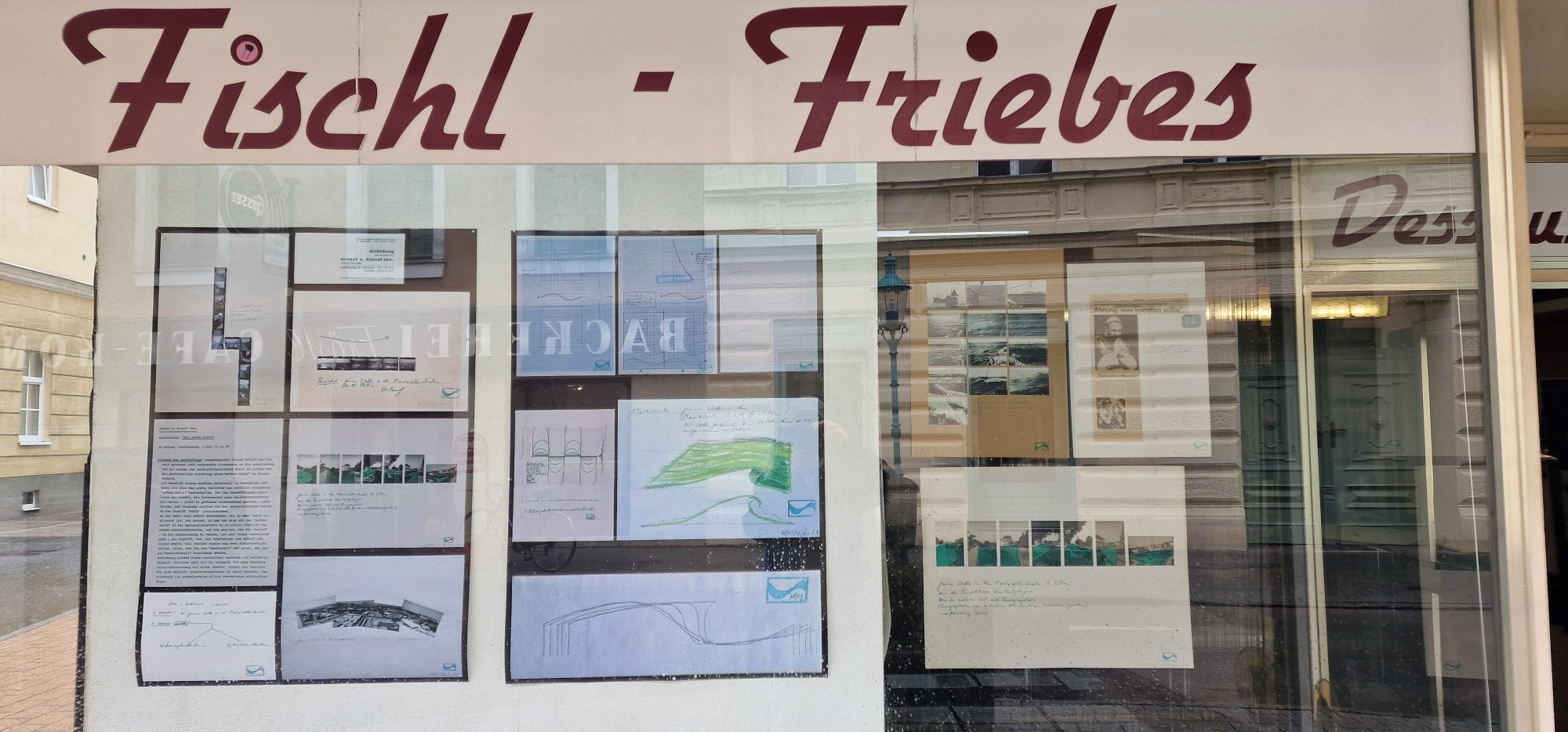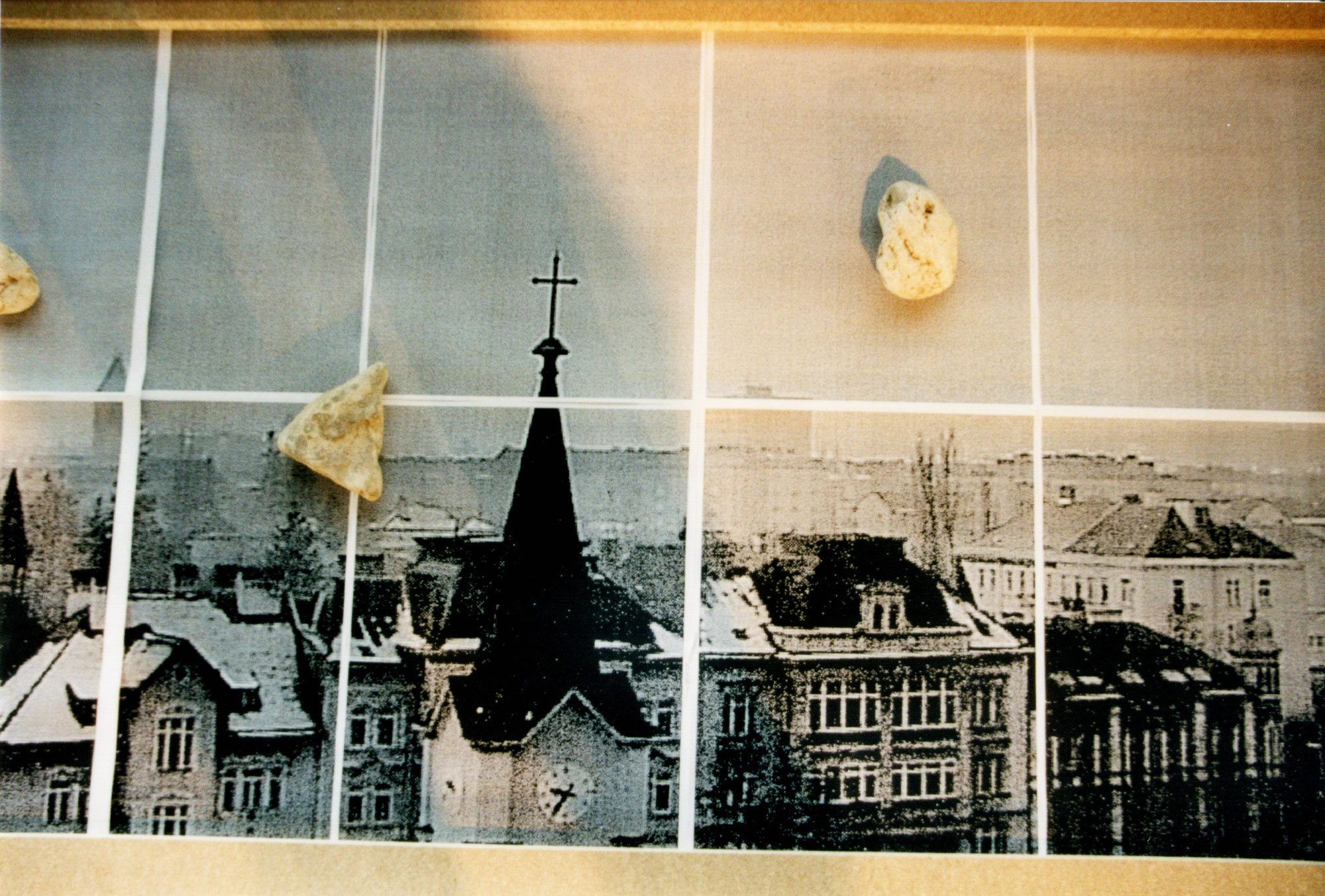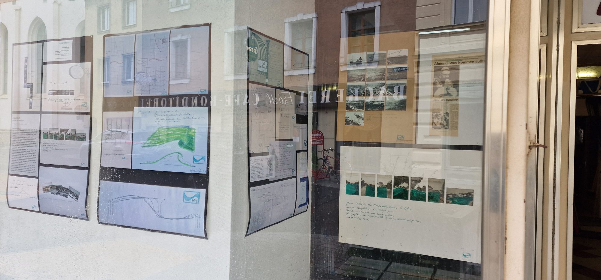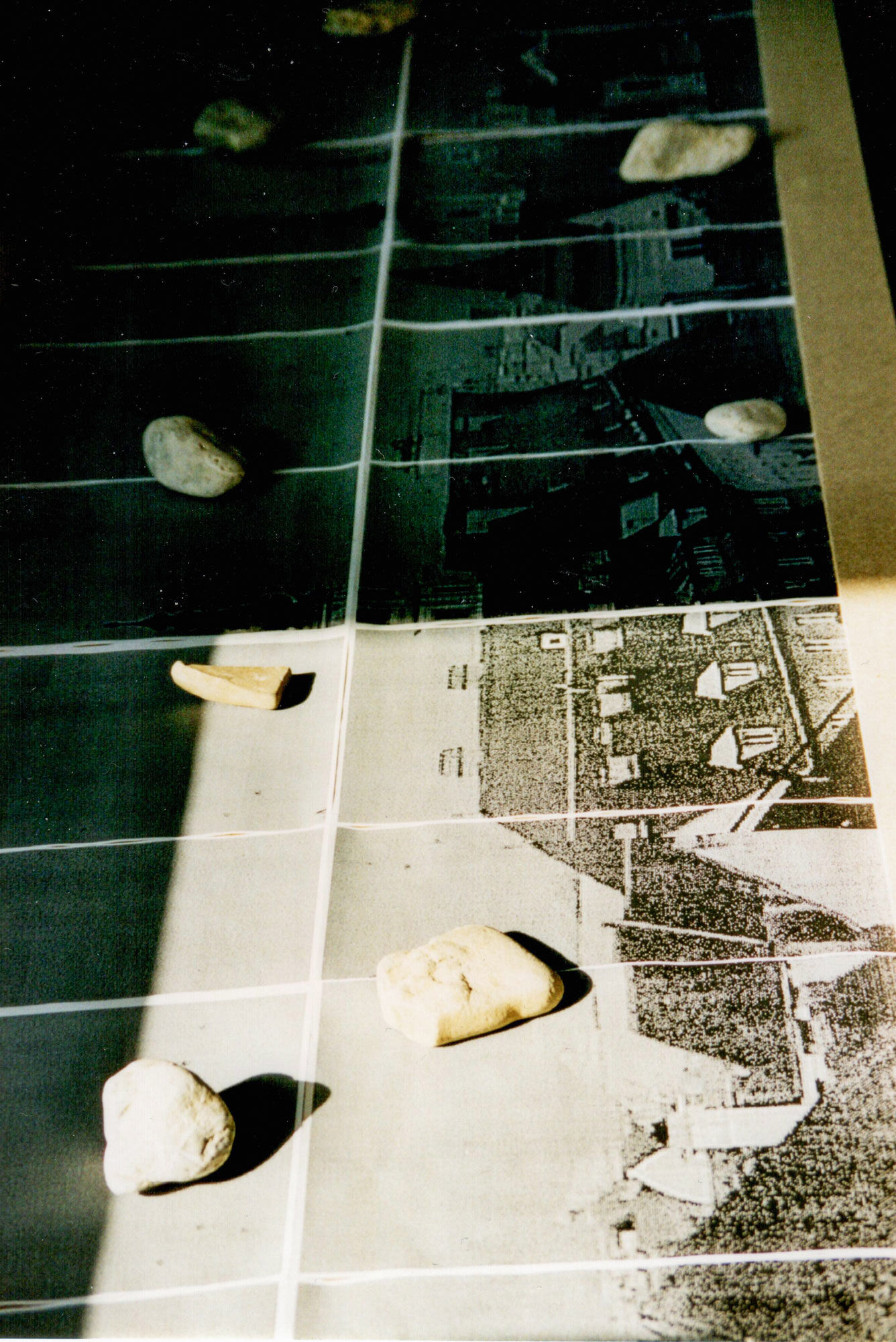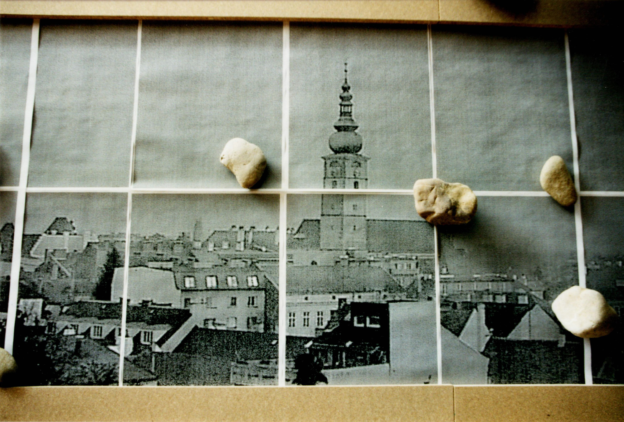 Installation Skyline im Fluss in der Ausstellung im Blickpunkt: St. Pölten , 2003 in der Landesbibliothek St. Pölten