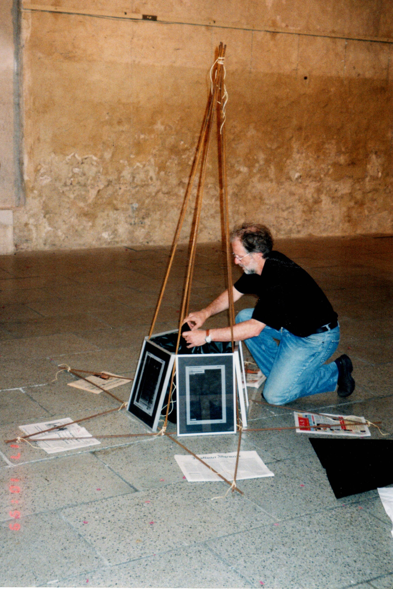 Meine Installation in der Ausstellung Zeitkryptisch in der Krypta der Prandtauerkirche St. Pölten 1993