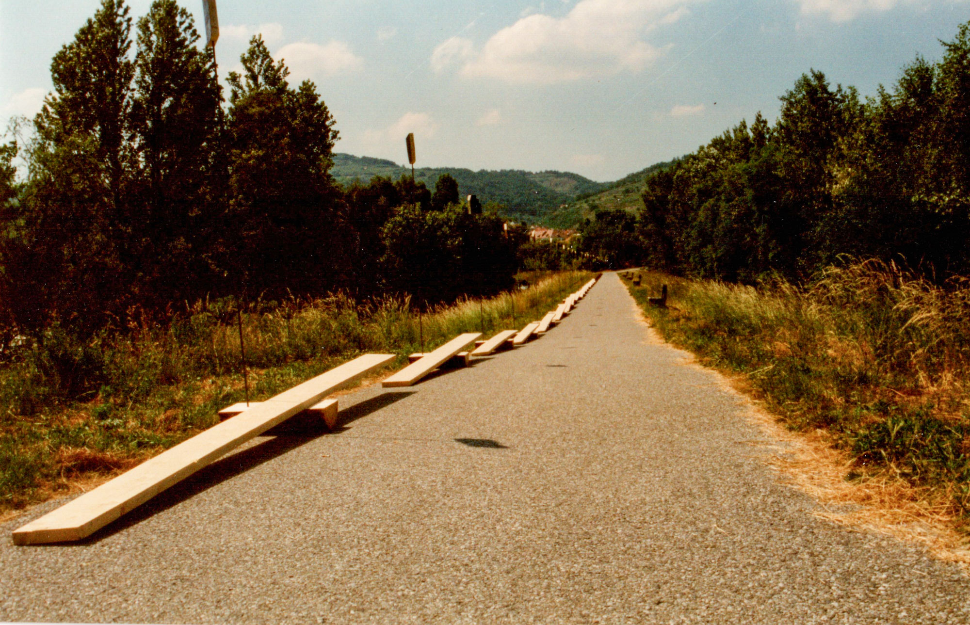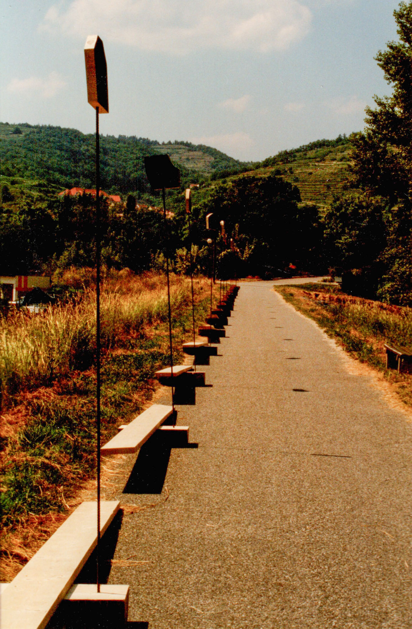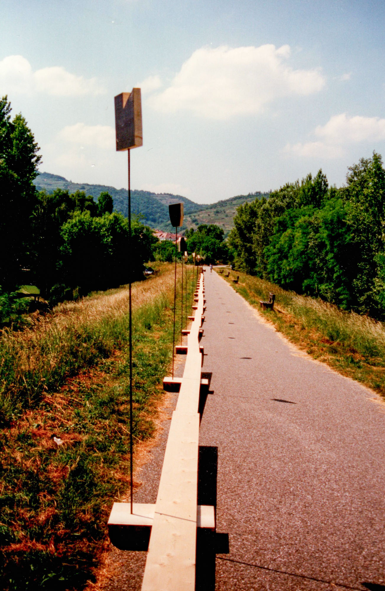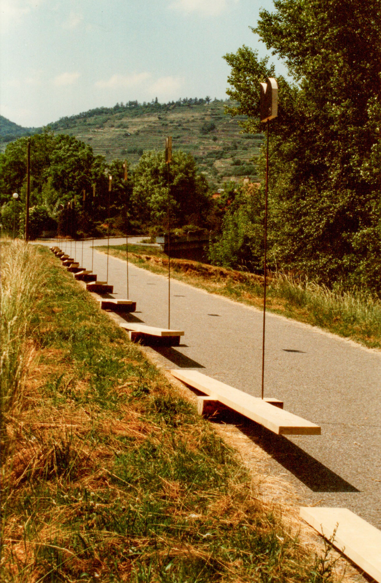 Auf dem Holzweg – Installation im öffentlichen Raum anlässlich des Donaufestivals 1997 in Krems / Donau