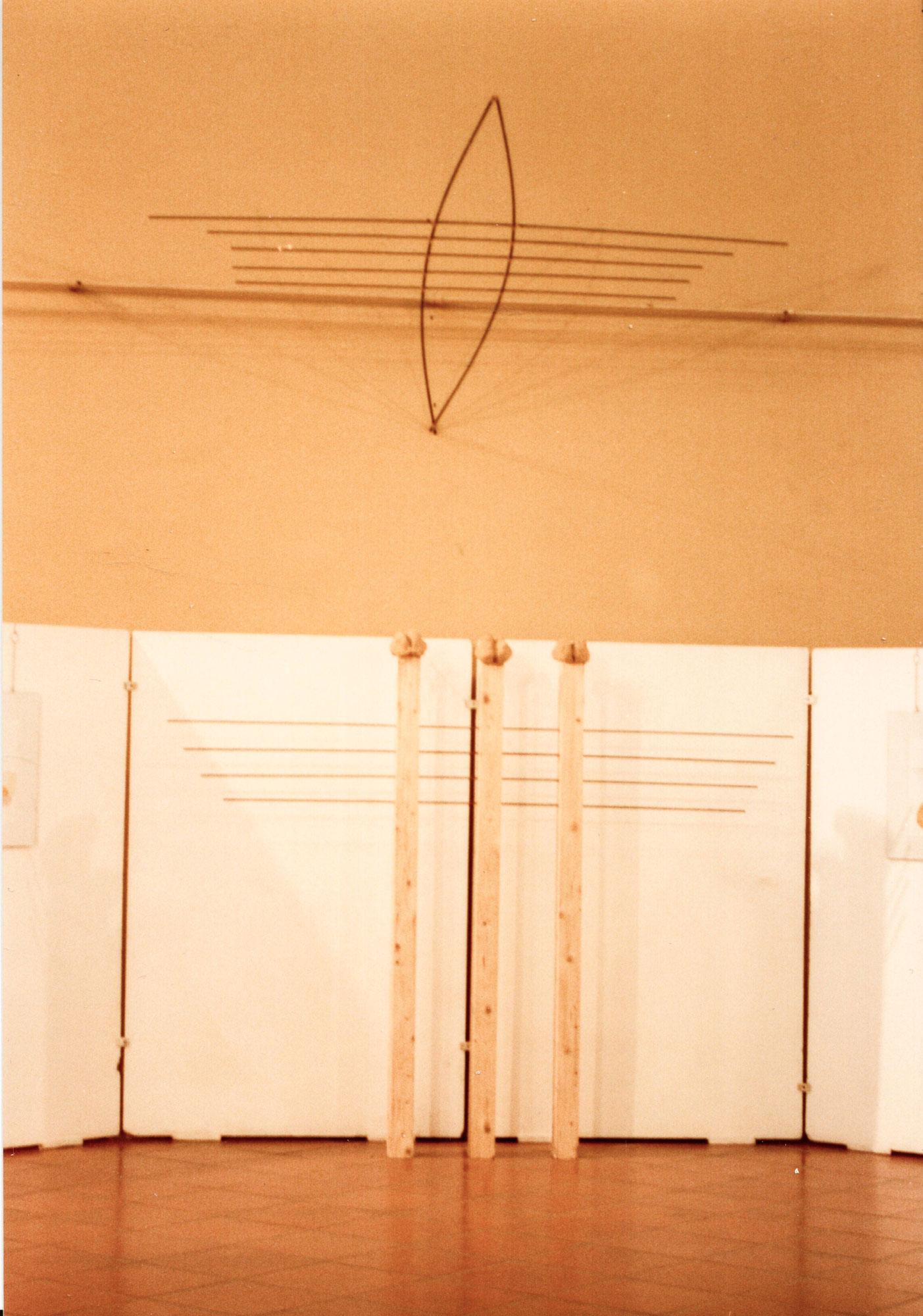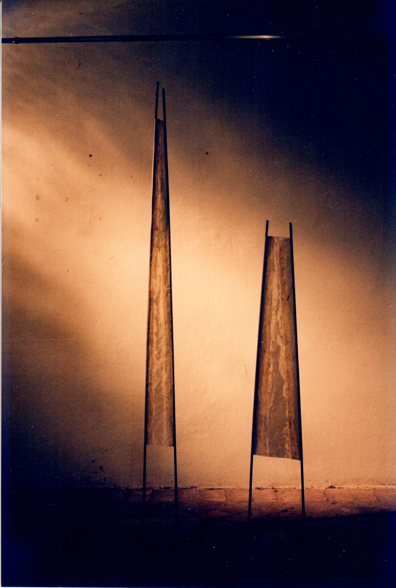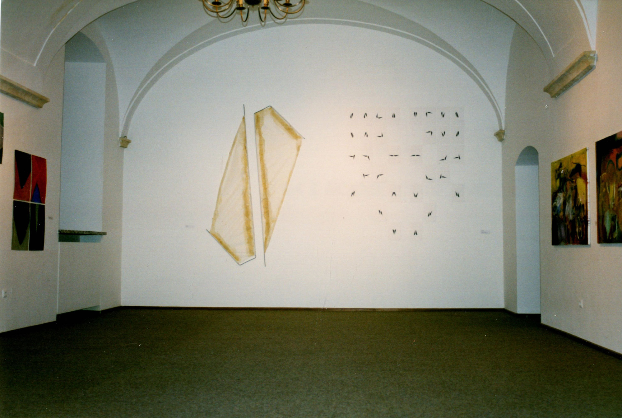 Dreieins und o.T. in der Ausstellung Zwischen Aktentasche und Palette in der ehem. Karmeliterkirche Wiener Neustadt 1993